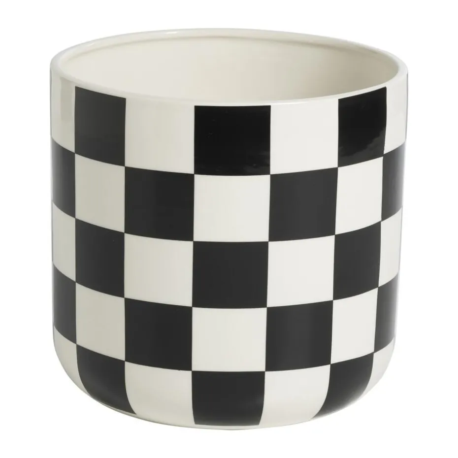 Geef je tuin of balkon extra gezelligheid met Check bloempot! Deze stijlvolle zwart-wit geblokte bloempot is een echte blikvanger. Gemaakt van steen (dolomiet), is deze bloempot stevig en duurzaam, perfect als bloempot voor buiten. Combineer meerdere buiten bloempotten voor een speels effect en creëer een sfeervol groen hoekje. Met Check breng je stijl en natuur samen in jouw buitenruimte!