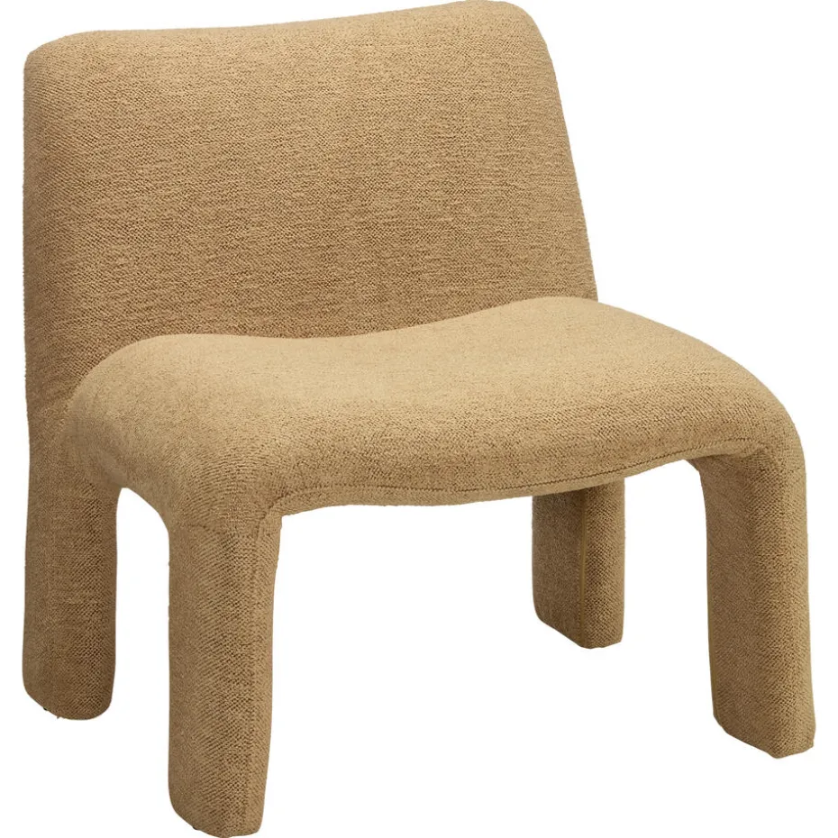 Fauteuil Amelia is gemaakt van een zachte zandkleurige bouclé stof voor een zachte en comfortabele zit. Door zijn vormen heeft de fauteuil een moderne uitstraling. Afmeting van 75x71x76,5 cm (lxbxh) en een zithoogte van 41 centimeter.