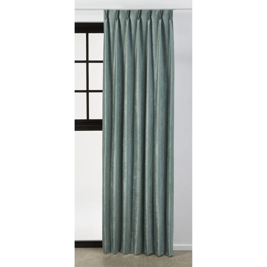 100% verduisterend gordijn Emma in de kleur groen heeft een zachte structuur. Deze chenille gordijnstof heeft een luxe uitstraling door de glansdraad. Dit black-out gordijn is aan de achterkant voorzien van een witte coating. Deze coating zorgt dat dit gordijn geen licht doorlaat en 100% verduisterend is. Daarom is de achterkant meestal wit en de voorkant is de gewone gordijnstof. Een black-out gordijn voelt wat stugger aan. Deze gordijnstof houdt, in tegenstelling tot dim-outs 100% het zonlicht tegen. Bij de confectie van deze kwaliteit kunnen kleine gaatjes ontstaan. Dit is inherent aan de stof en kan niet voorkomen worden. 140 cm breed.