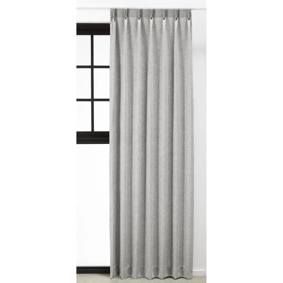 Gordijnstof van stevig lichtgrijs materiaal. Soepelvallend en kreukherstellend. 144 cm breed.