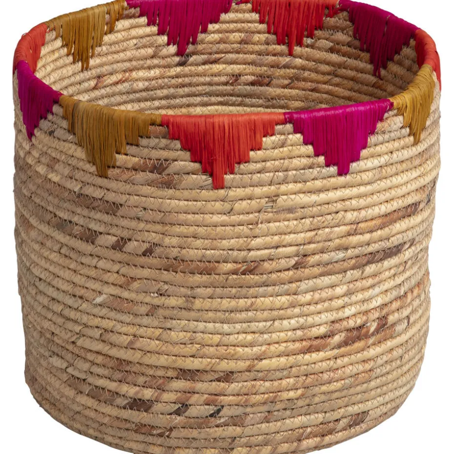 De Piana opbergmand, met een diameter van 28 cm, is ideaal voor kinder- en woonkamers. Deze ronde mand zonder handvatten is gemaakt van 100% natuurlijke waterhyacinth en voegt een warme, natuurlijke uitstraling toe aan elke ruimte. De rand heeft een speelse multicolor afwerking, wat zorgt voor een vrolijk accent. Perfect voor het opbergen van speelgoed, boeken of accessoires.