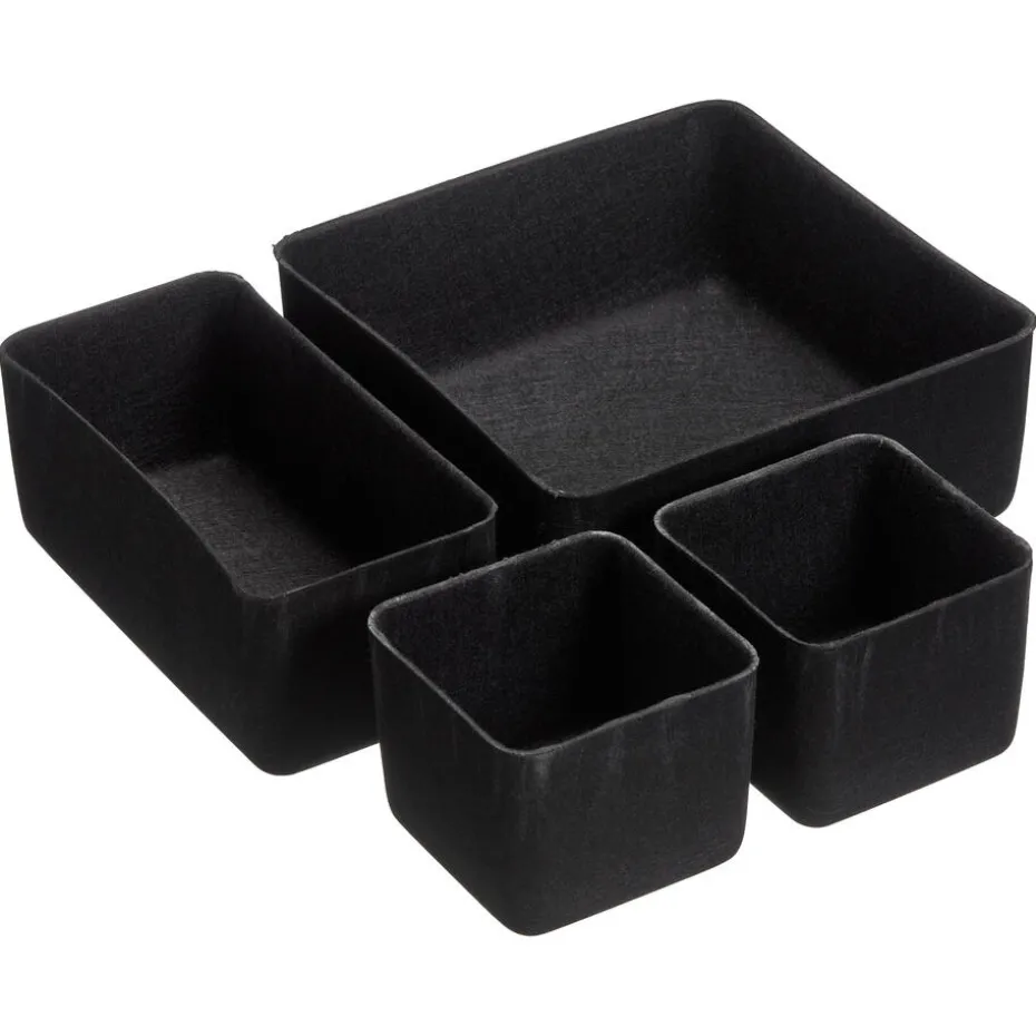 Deze opberger is gemaakt van vilt en is zowel functioneel als stijlvol. Met vier vakjes biedt deze zwarte opberger voldoende ruimte voor je spullen. De opberger heeft een totale afmeting van 25x25x10 cm (lxbxh).