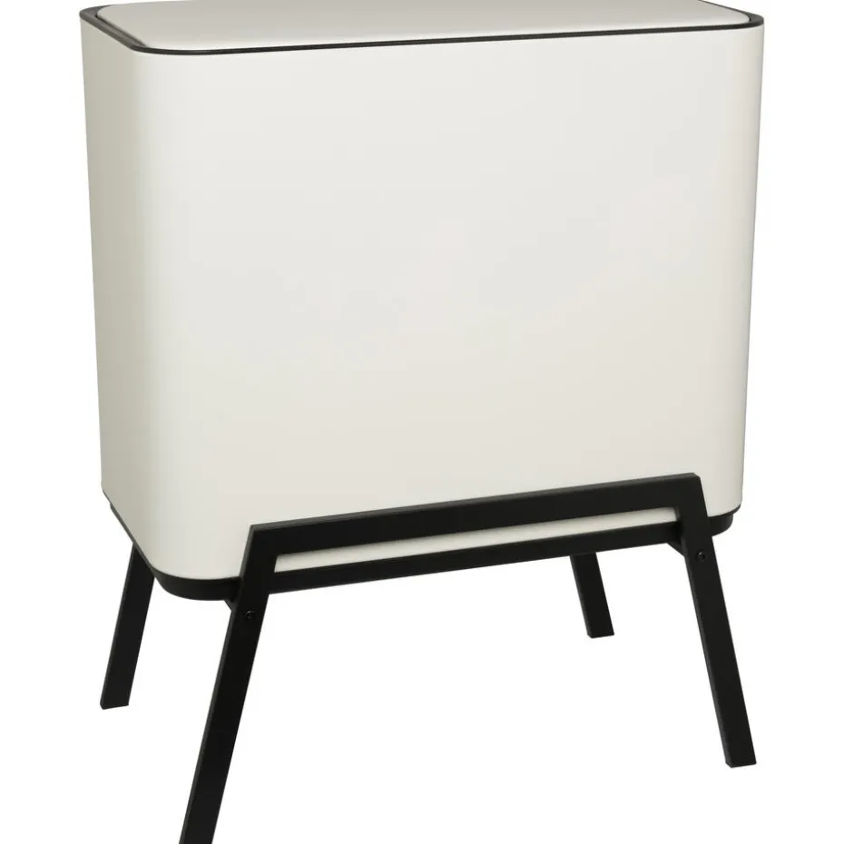 Deze afvalemmer op pootjes heeft 3 verschillende prullenbakken met een inhoud van 28 liter, 12 liter en 5 liter in een moderne offwhite kleur. Deze prullenbak is gemaakt van metaal en heeft een afmeting van 56x34x70 cm (lxbxh).