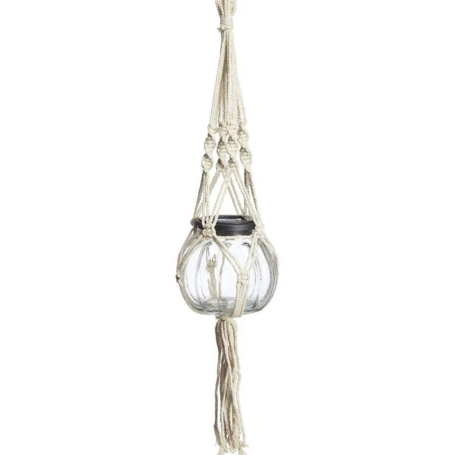 Hangende glazen solarpot. Voor zowel binnen als buiten te gebruiken. Kleur: naturel. Verkrijgbaar in diverse kleuren.